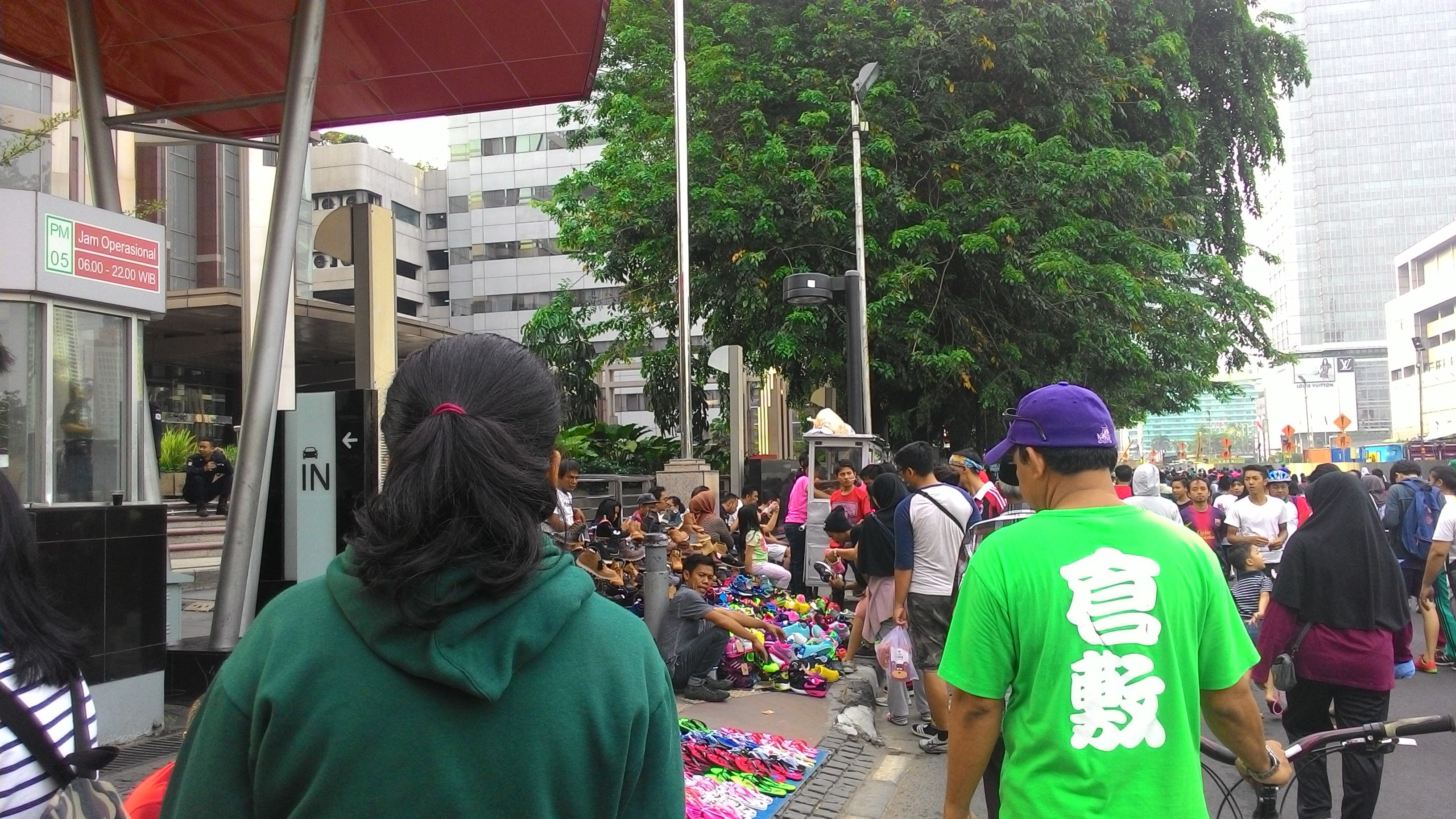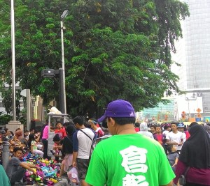 All this time, I thought Car Free Day is a campaign to promote about reducing emission. I thought at least people could keep this Car Free Day time clean. Turns out, not only people drive their vehicles to the Car Free Day’s border areas, people also sell things on the side of the street and throw the trash on the same place where they buy it (on the street). I saw people who come there with an objective to enjoy the fresh air and workout are lessening, but more people to do campaigns and businesses. Now I see this as Pasar Kaget (close meaning: Sudden Market).